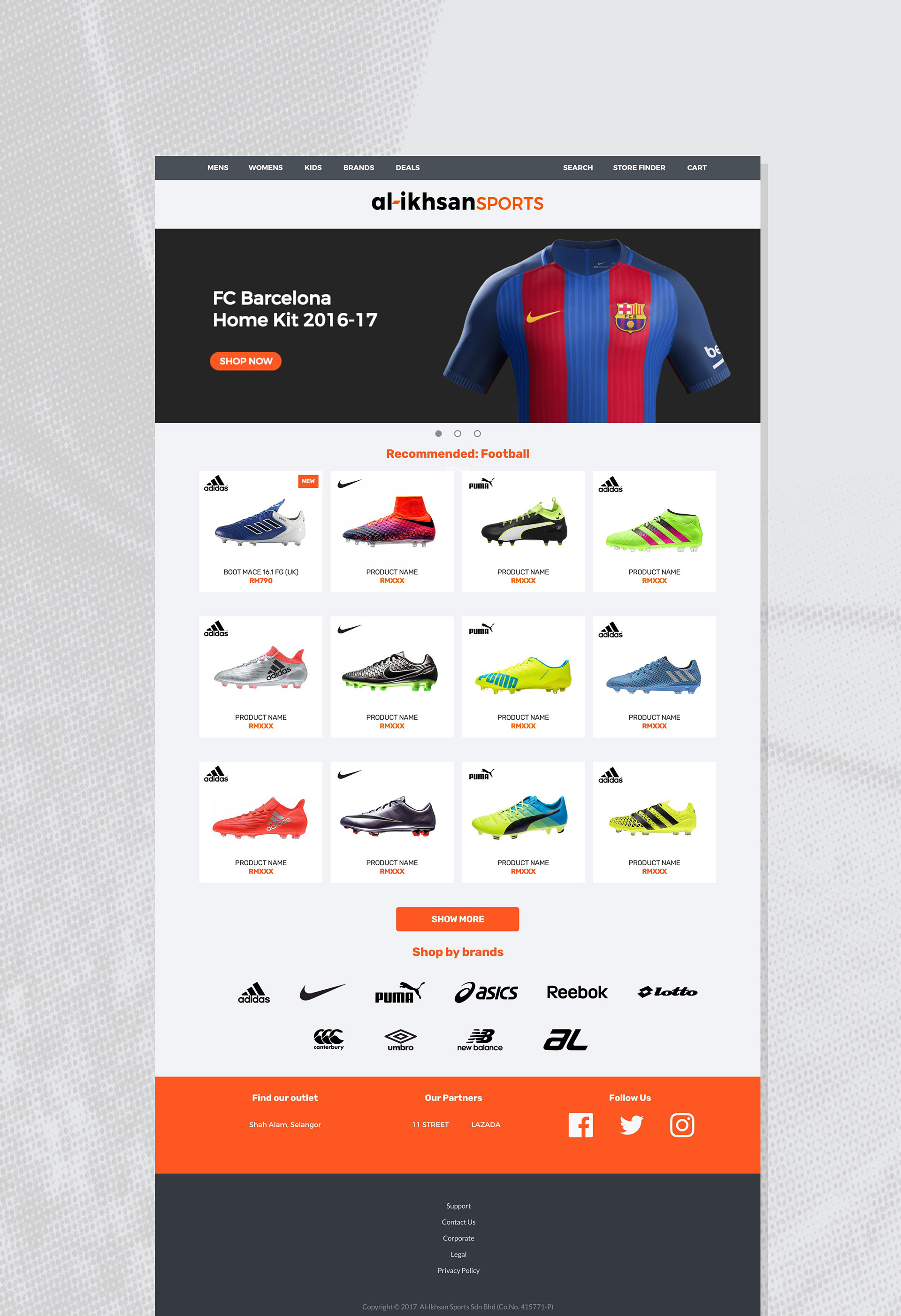 UI/UX Designer Proposed web revamp (Phase I) for Al-Ikhsan Sports, a leader in multi-brand sports retail in Malaysia. Client: Al-Ikhsan Sports